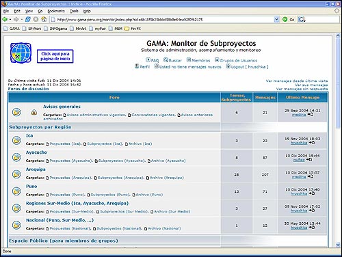 Asimismo hubiera sido de utilidad poder subir los informes y productos de los subproyectos al "Monitor" en forma de archivos adjuntos (attachments). No obstante, el software diseñado especificamente para Foros de discusión no posee funcionalidades que hubieran permitido una adecuada sistematización y catalogización de estos informes, quedando accesibles únicamente a traves del expediente respectivo. De tal manera la posterior decisión de publicación de los productos de los subproyectos en una plataforma de Gestión de Conocimientos (el GECO - ver más abajo) ha sido probablemente la mejor opción.