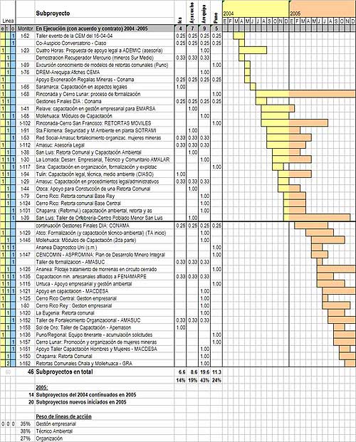 A finales de la Fase 2, en los años 2004 y 2005, se habían ejecutado 46 Subproyectos: